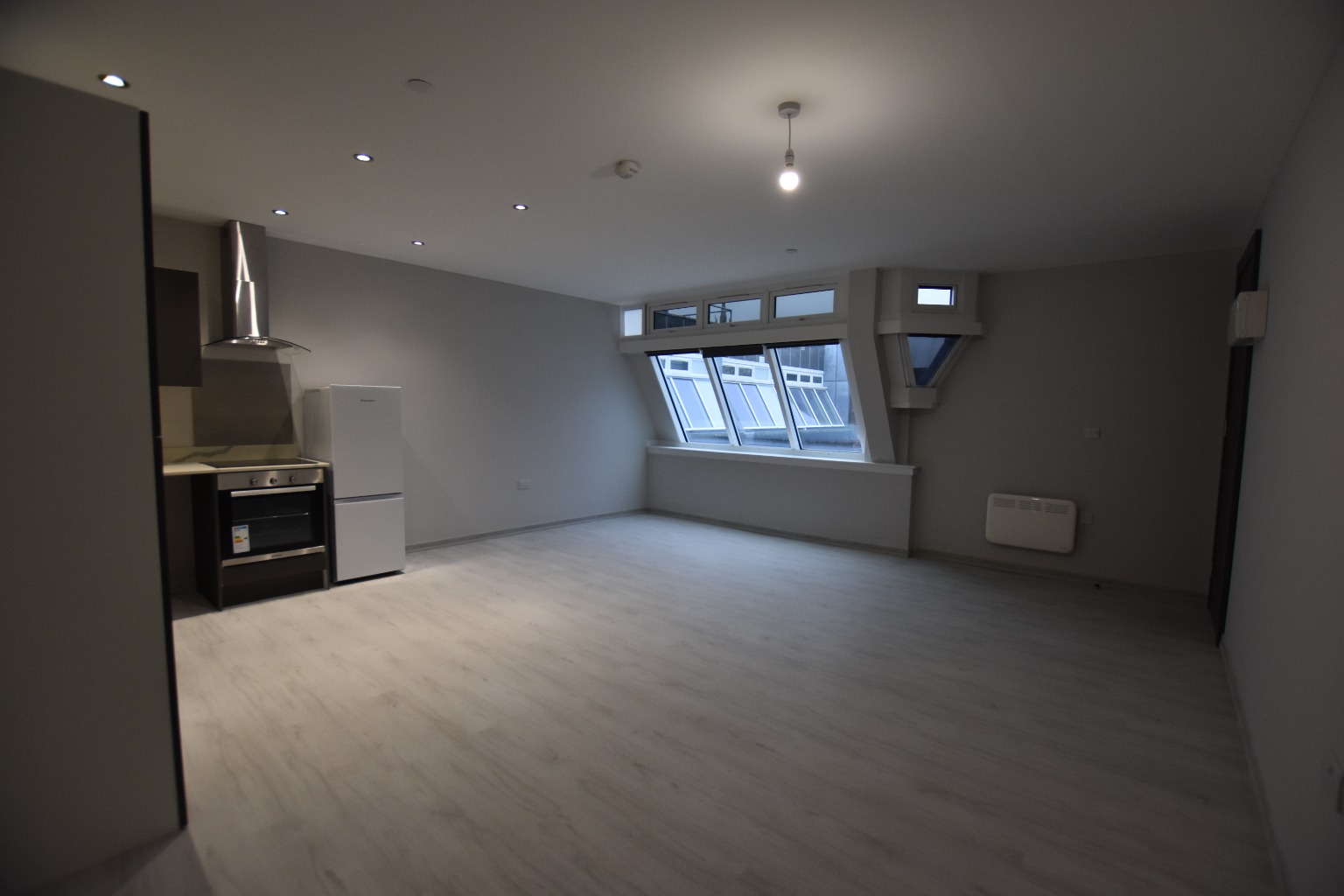 Property consists of entrance to the hallway, open plan kitchen/ living room, 2 bedrooms and a bathroom.